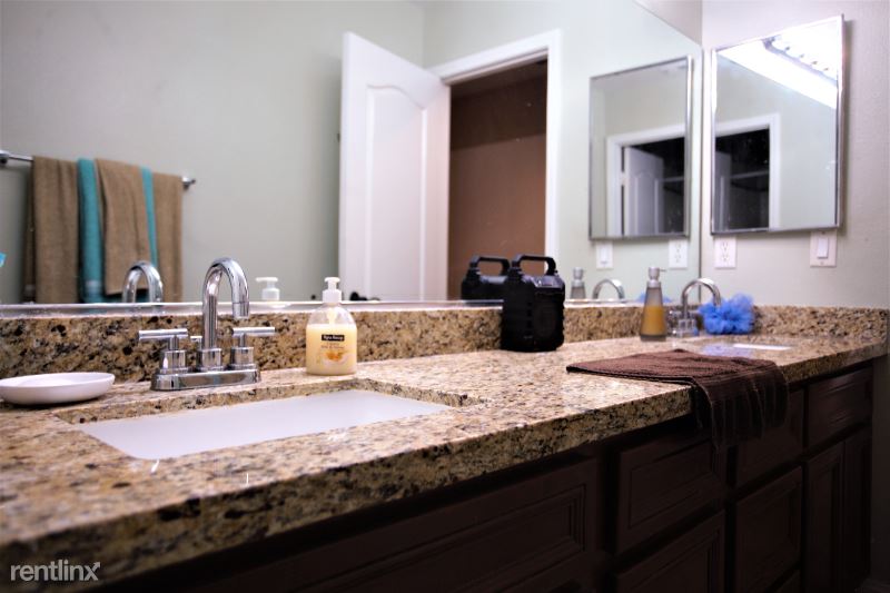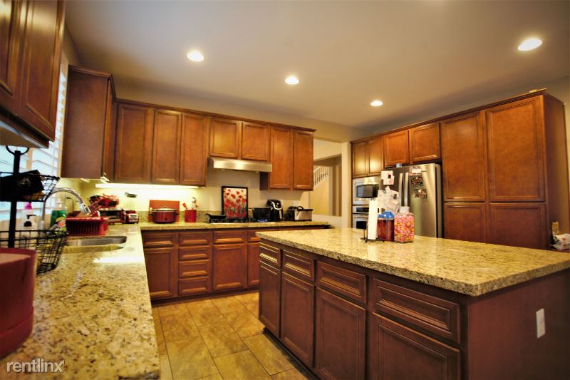 This amazing home is located in the exclusive guard gated enclave of Greer Ranch. Featuring 4b/2.5b, 3 car garage. Natural light throughout. First floor has open gourmet kitchen featuring granite countertops, center island, stainless steel appliances, oak cabinetry and 5 burner cook top. Plenty of shelving space for storage. Also on first floor is half bathroom, and office/den. Open family room w/ electric fireplace. Large dining and entertaining area. Window shutters throughout add a stylish look and easy to maintain. Upstairs features a master suite with double sinks, granite countertops, separate shower, soaking bathtub, and large walk-in closet. Three additional bedrooms upstairs and double sink vanity bathroom. Laundry room is conveniently located upstairs along with Samsung washer and dryer. Huge backyard. Solar panels installed on roof which saves renter annually in electricity.