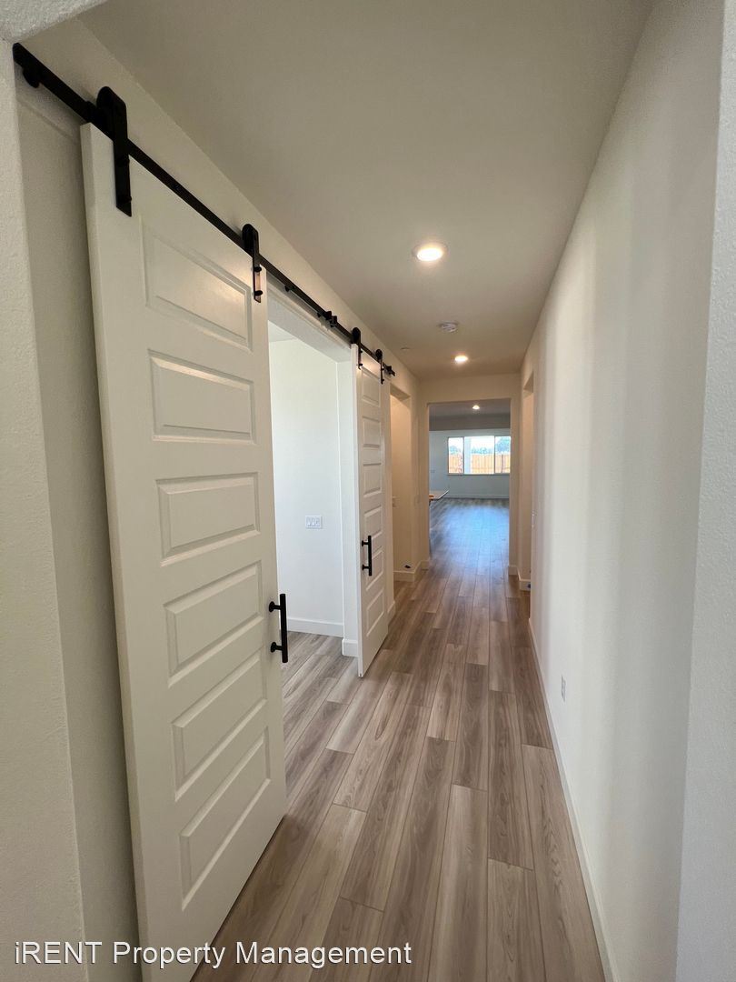 Enter your front door and find light bright and airy design aesthetics throughout the house. A den with modern farmhouse doors is immediately to your left. Large designer hardware adds to the charm of the house. Down the hall is a 1/2 bath, coat closet, and access to the 2 car attached garage. The garage floors have been professionally epoxy'd for a cleaner look. The home opens up to the great room with large kitchen island, quartz counter tops, and shaker cabinets. Dual ovens and lots of counter prep space make this space perfect for the chef in the household. Two bedrooms are located down the hall with on-suite bathrooms. Spaces/rooms/hallways are situated for ADA access. The laundry is also located in the hallway. The backyard is fully landscaped with a perfect place to put patio furniture to enjoy morning coffee.