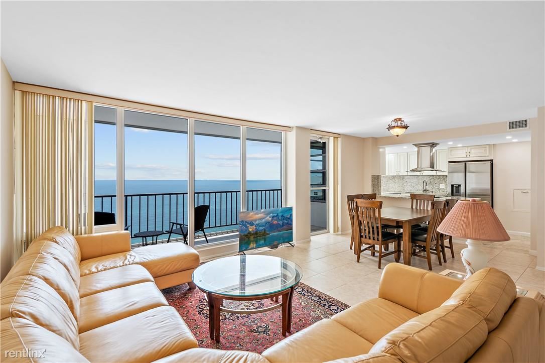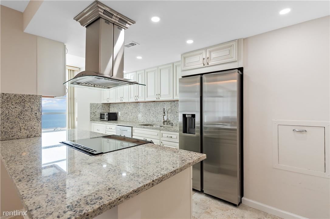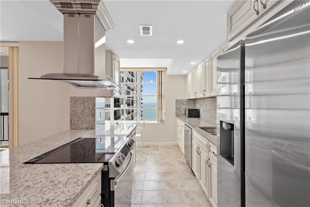 Partially furnished, HUGE one-bedroom unit available for ANNUAL rent. The semi-private elevator will take you to this sky-high beachfront condo. You will notice the consistent porcelain tile throughout and the stately floor-to-ceiling windows but will be stopped in your tracks when you see the magnificent unobstructed ocean views from the east and scenic Intracoastal views from the west. The updated contemporary kitchen includes a chef's range hood, Samsung refrigerator, and granite countertops. You will love the large bedroom, walk-in closets, and updated bathrooms. Oversized balcony, separate full-size laundry room, and garage parking space. The building has a full-size gym, community room, & a large heated swimming pool & sun deck. Shopping, stores, and services nearby.