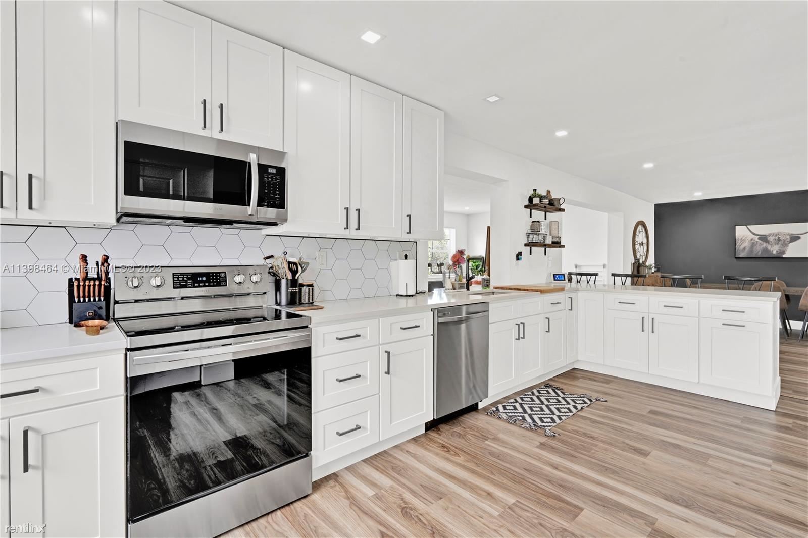 Welcome to your dream home! This stunning property boasts 3 bedrooms and 2 bathrooms with an open layout that seamlessly connects the living area to the dining and kitchen areas, creating the perfect space for entertaining guests. The home has been completely remodeled with a BRAND-NEW ROOF. The kitchen features top-of-the-line stainless steel appliances, custom cabinets and sleek quartz countertops that are perfect for preparing meals. The bedrooms and bathrooms have been fully updated with modern fixtures and features. The backyard has plenty of room for a pool or backyard oasis to enjoy views of the lake. No Restrictions. Courtesy of LoKation. Close proximity to Shopping, Restaurants, Parks and more.