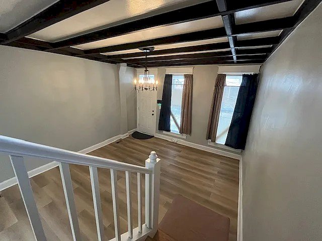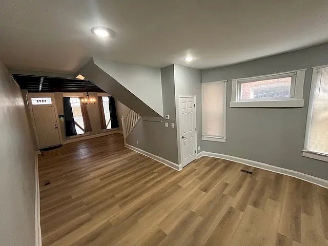 This completely renovated home features 3 bedrooms and 1.5 bathrooms, blending contemporary comfort with timeless appeal.  Experience a spacious open-concept design with the following home features: * Modern coffered tall ceilings creating an open, dramatic grand entrance into the home * Security system * Hardwood and tile flooring * Natural lighting staircase * Newly renovated kitchen * Newly renovated bathroom * Hookups for laundry washer and dryer * Backyard access This smoke-free property is 10-15 minutes away from The Baltimore Zoo, Coppin State University, University of Maryland Baltimore Downtown Campus, Oriole Park at Camden Yards, and the lively Downtown Baltimore.   House Tours (as of October 1): Saturdays: 11 a.m. - 12 p.m. Please schedule a time at least 1 day in advance.