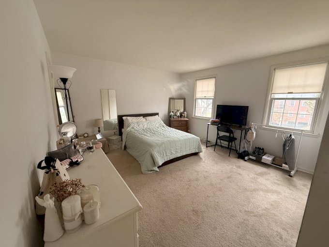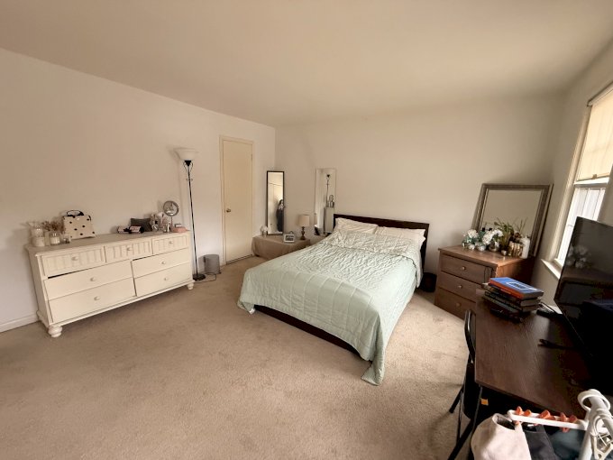 The room is bright and spacious, and it has two full closets.