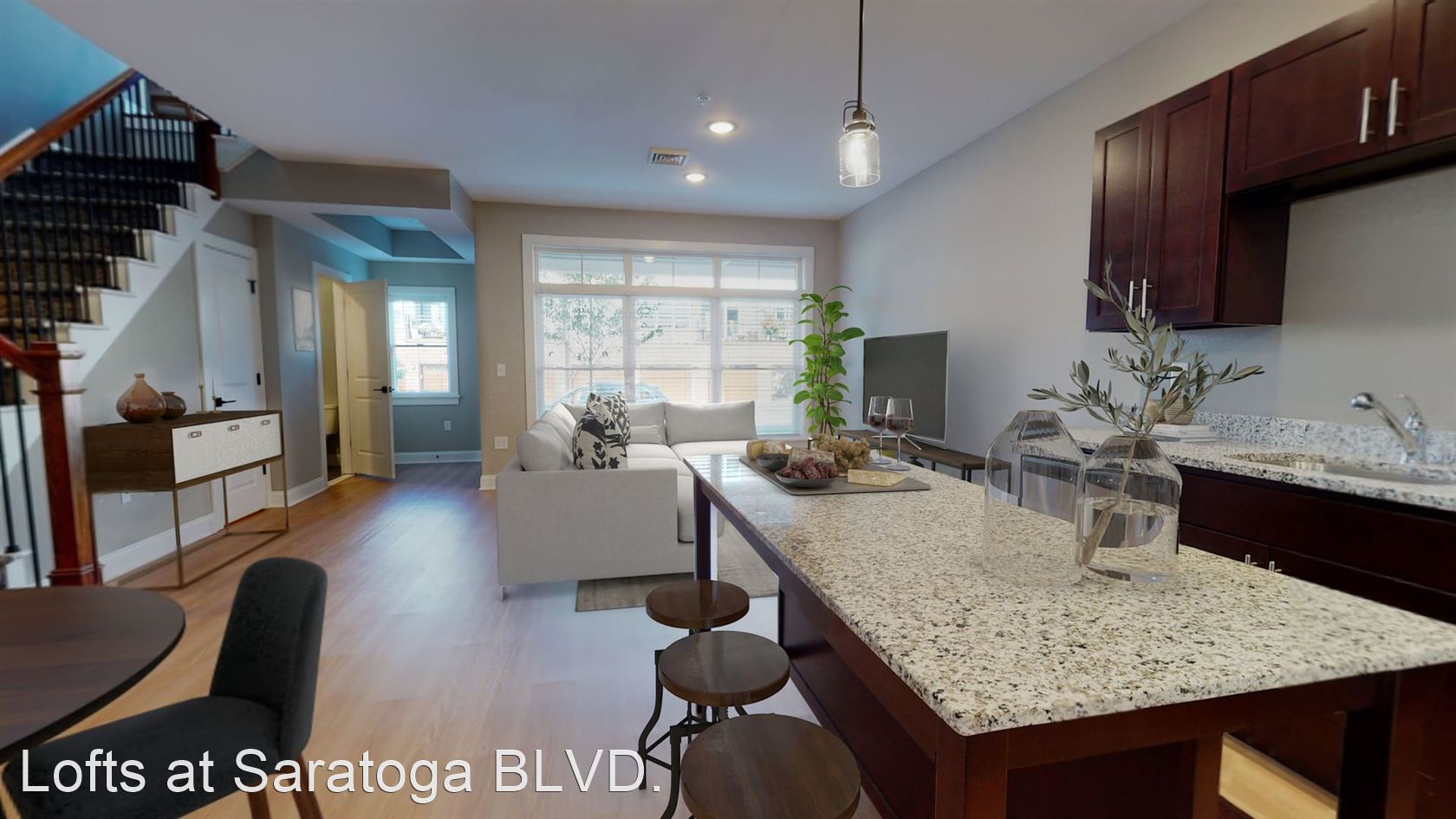 Town House Style with a Home Office and Attached Garage - This exquisite townhouse style apartment home with private entrance offers incredible light-filled space with 1 Bedroom plus den,1 ½ Bathrooms and a spacious 966 square feet of pristine living space. Situated throughout two floors, this showplace of a home features an expansive second floor master bedroom with walk in closet, custom cabinetry, and on-suite bathroom and laundry. The lofted home office area offers a quiet sanctuary perfect for either work or play. The Lofts at Saratoga BLVD. offer a wealth of luxurious amenities including pet friendly apartment homes, hardwood floors, granite countertops, tray and vaulted ceilings, stainless steel appliances and attached garages. Central air conditioning and full size washer and dryers are standard in all units throughout the community. Indulge in the finest amenities including a state-of-the-art Clubhouse featuring an indoor swimming pool open year-round as well as a fireside luxury spa. Enjoy a game of billiards or just visit with friends at the upscale Coffee Bar and Greatroom. The Clubhouse features two Fitness Centers (a weight room and a cardio room), including a Mirror fitness experience where residents can select classes and enjoy a true unique visual workout.