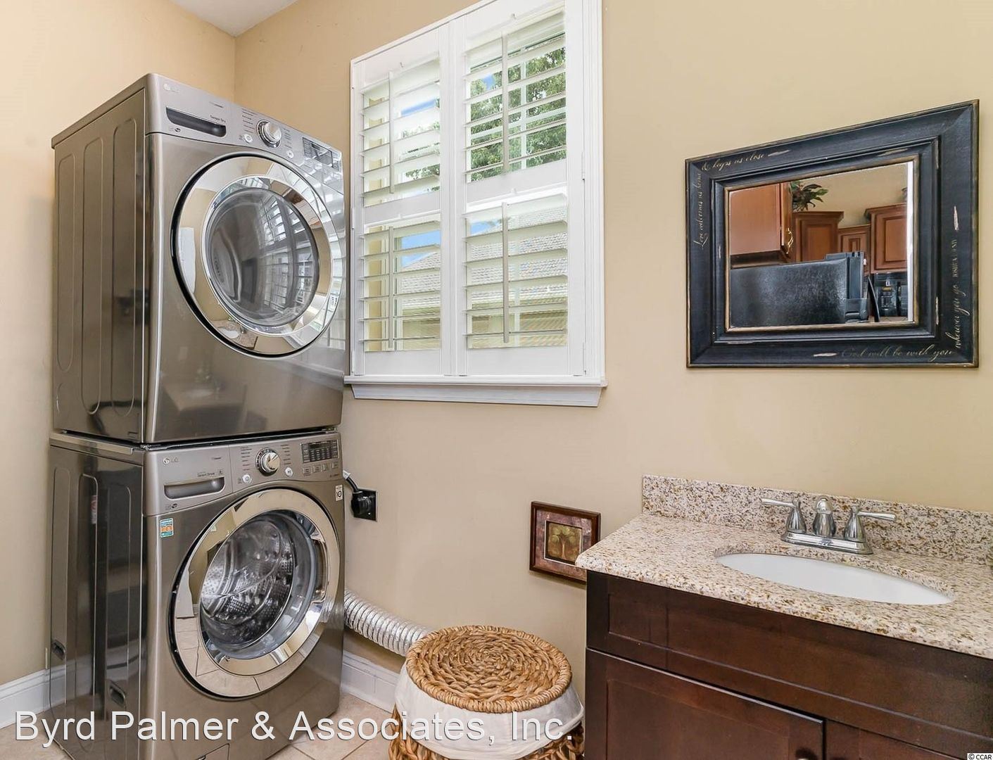 Wood blinds and ceiling fans in all rooms. Separate laundry room off of the kitchen, and a 2 car garage with additional drop down storage.