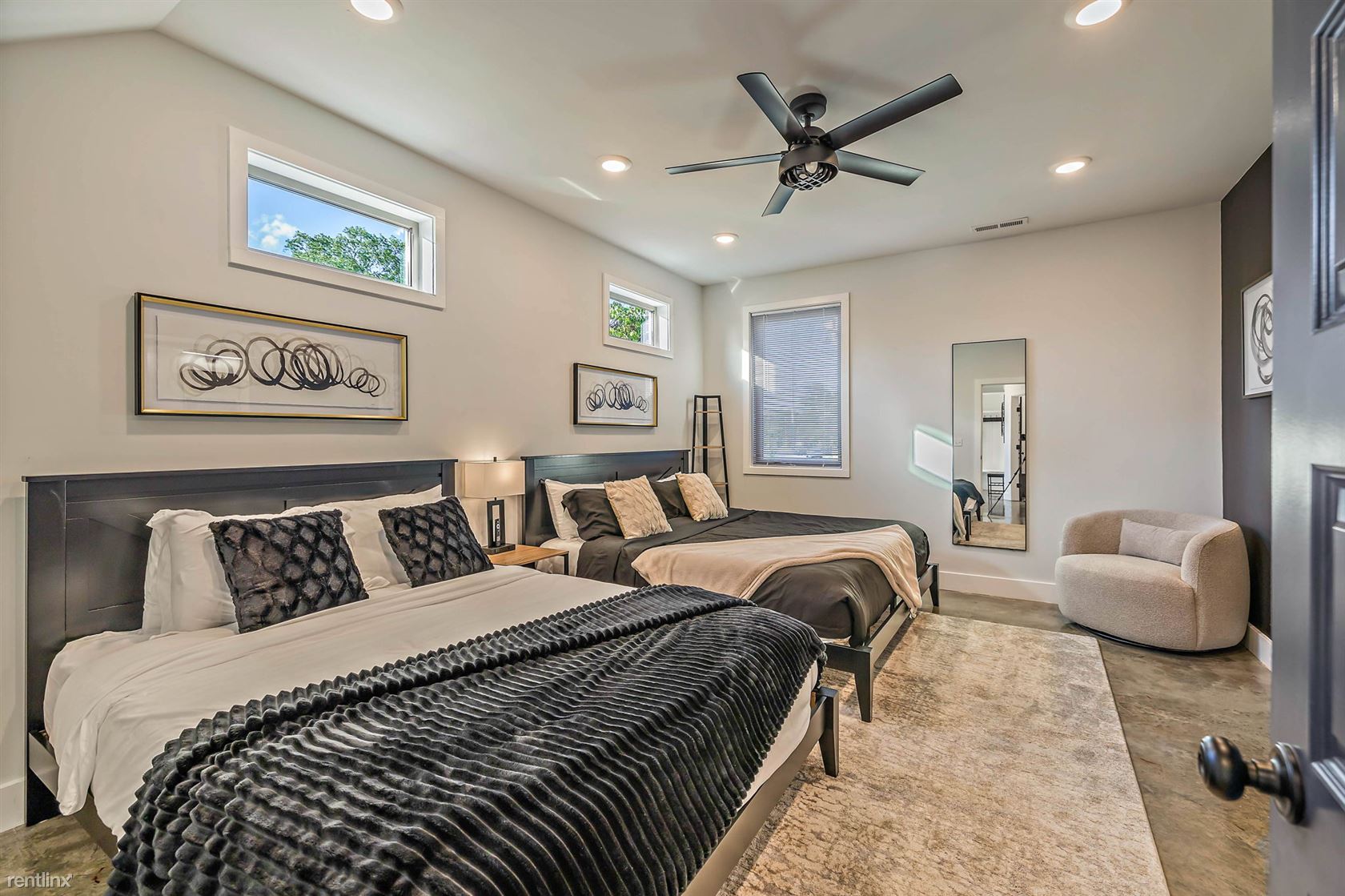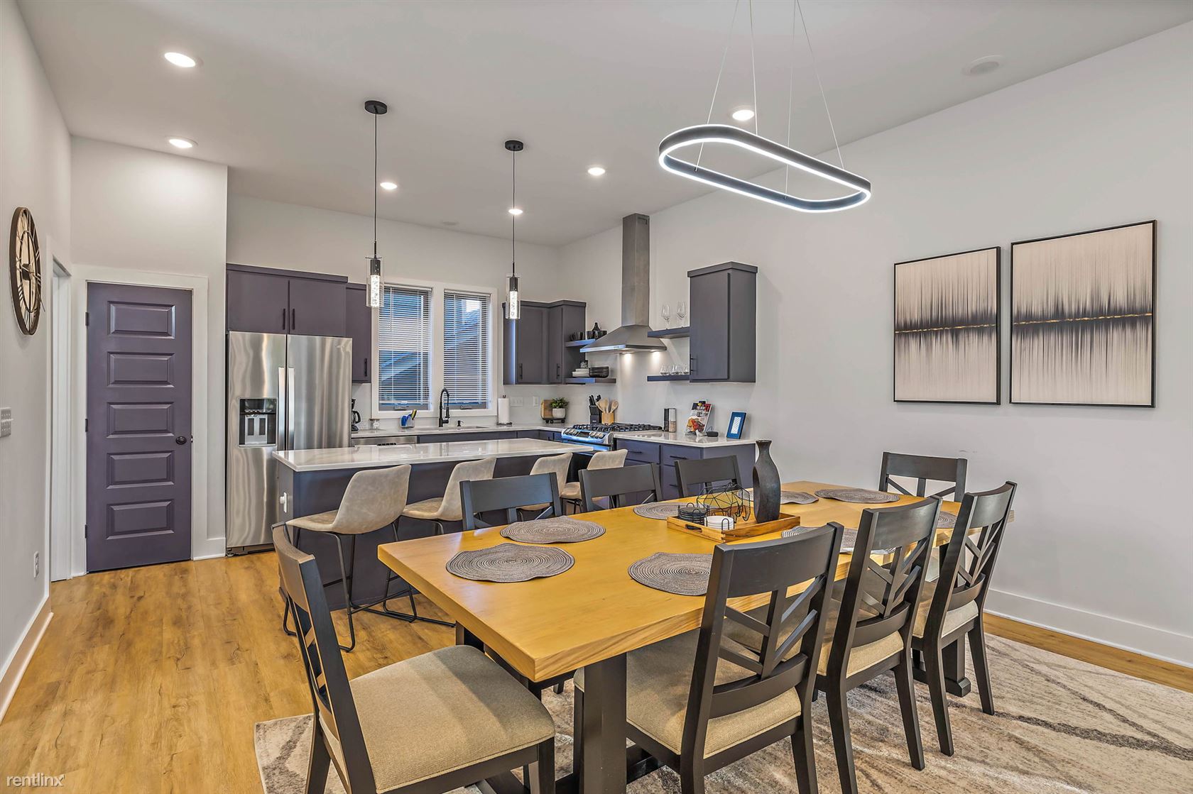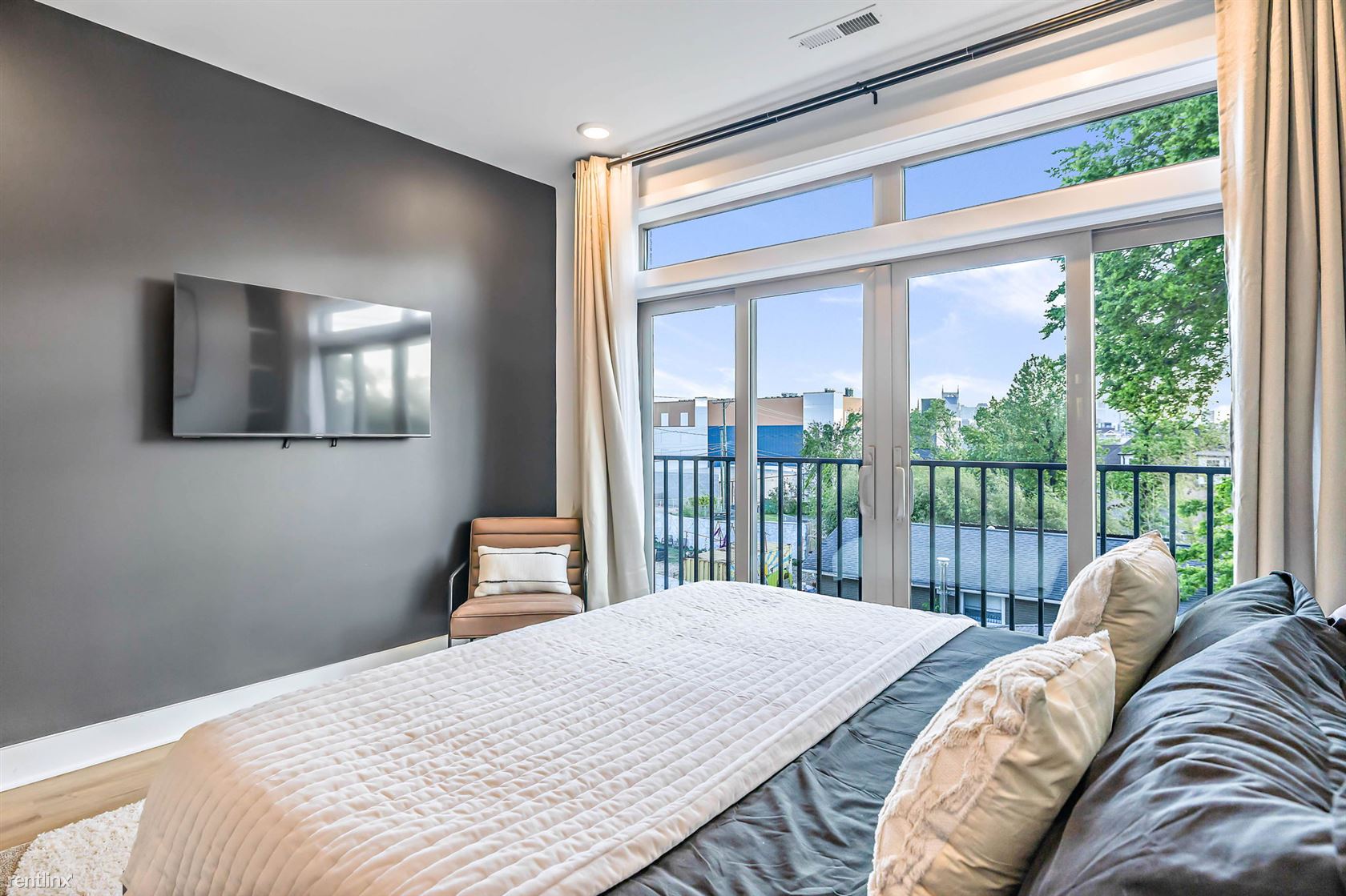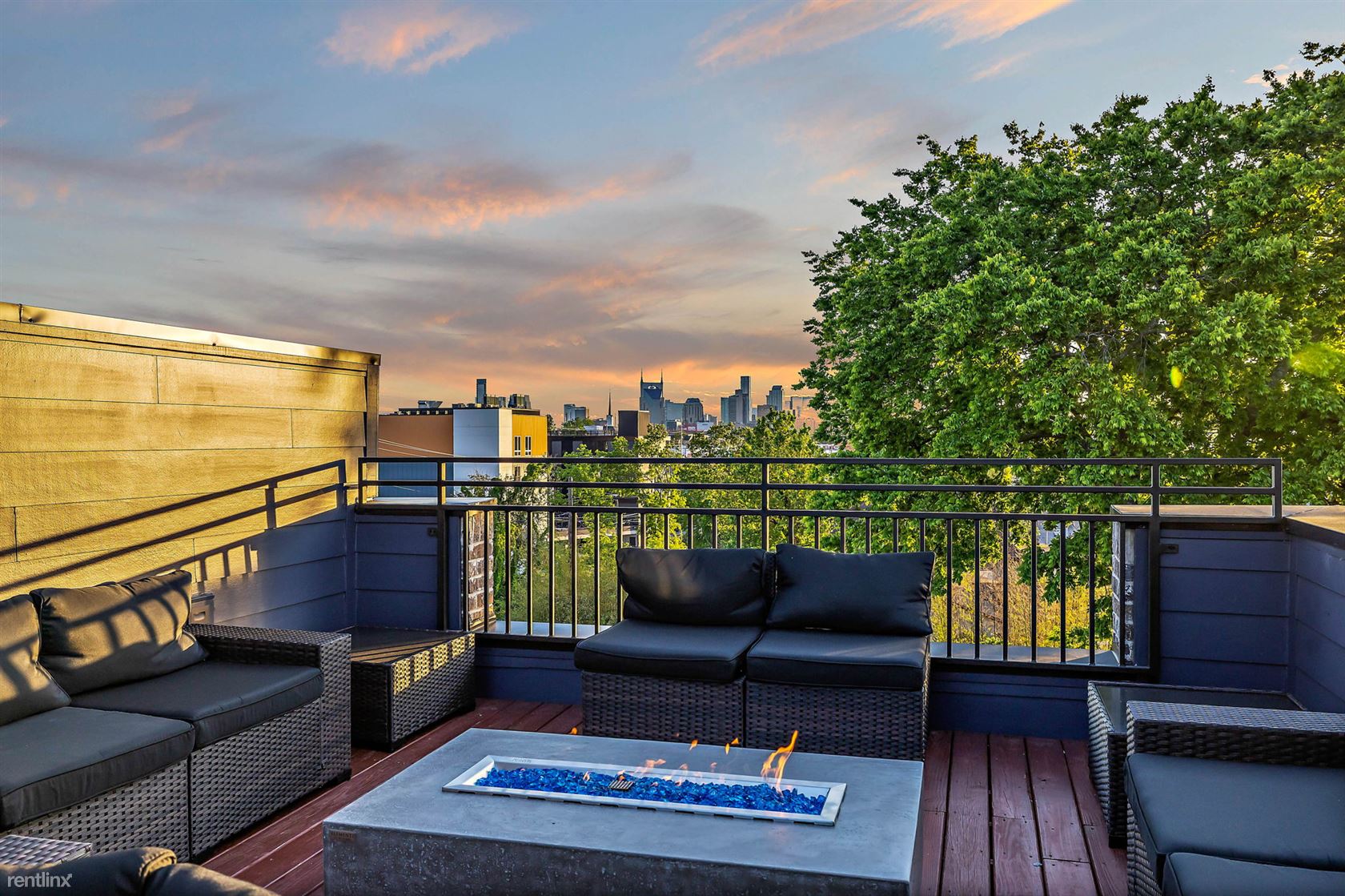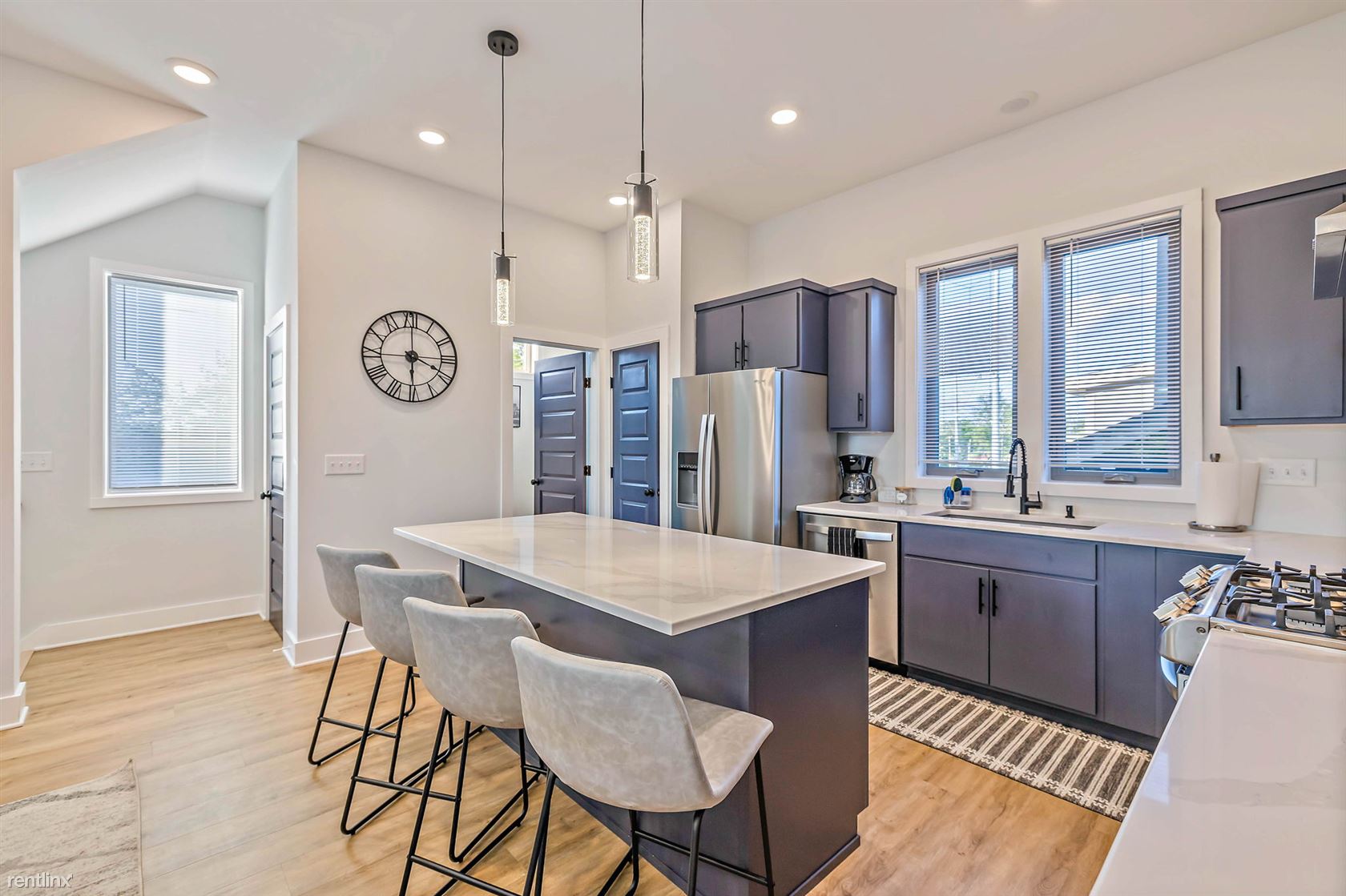 Welcome to our newly built, 4-bedroom, 4.5-bathroom townhome located just off Main St, in East Nashville TN! This stunning property offers a generous 2300 sqft of living space spread across three levels, complete with a rooftop deck that offers breathtaking views of the Nashville skyline. As you step inside, you'll be greeted by contemporary polished concrete floors and a stylish interior with high-end finishes and thoughtful touches throughout. The first level boasts a master suite with one king bed and one queen bed, a rainfall shower, and a walk-in closet. There's also a second bedroom with a full bath, perfect for kids or additional guests. The second level features an open floor plan with a fully furnished kitchen, living area, powder room, and dining area, with large glass doors that offer plenty of natural light. The kitchen is fully stocked with cooking supplies and appliances, including a gas stove, large island, pantry, coffee maker, blender, Keurig, toaster, and a full set of baking utensils, and dishes. The dining table can seat eight, and there's additional seating for four at the kitchen bar. The living area features a large couch with a pull-out chaise/bed that can sleep two to three adults comfortably. The third level includes a laundry room with a washer/dryer, a bedroom featuring a queen bed with a pull-out TwinXL trundle bed and attached full bath with tub, and another bedroom featuring a King bed, TV, full bath with a rainfall shower wall, spectacular city skyline views from the 10' glass doors. There's also a private flex space with a barn door with city views and furnished with a desk and office chair. One of the highlights of this property is the rooftop deck, which offers nearly 500 sqft of outdoor space, complete with a gas fire pit, TV, deck lighting, and an indoor wet bar with a beverage fridge, sink, and cabinets. It's the perfect spot to relax and take in the stunning views of the Nashville skyline. Located within walkin No Pets Allowed (RLNE8140267)